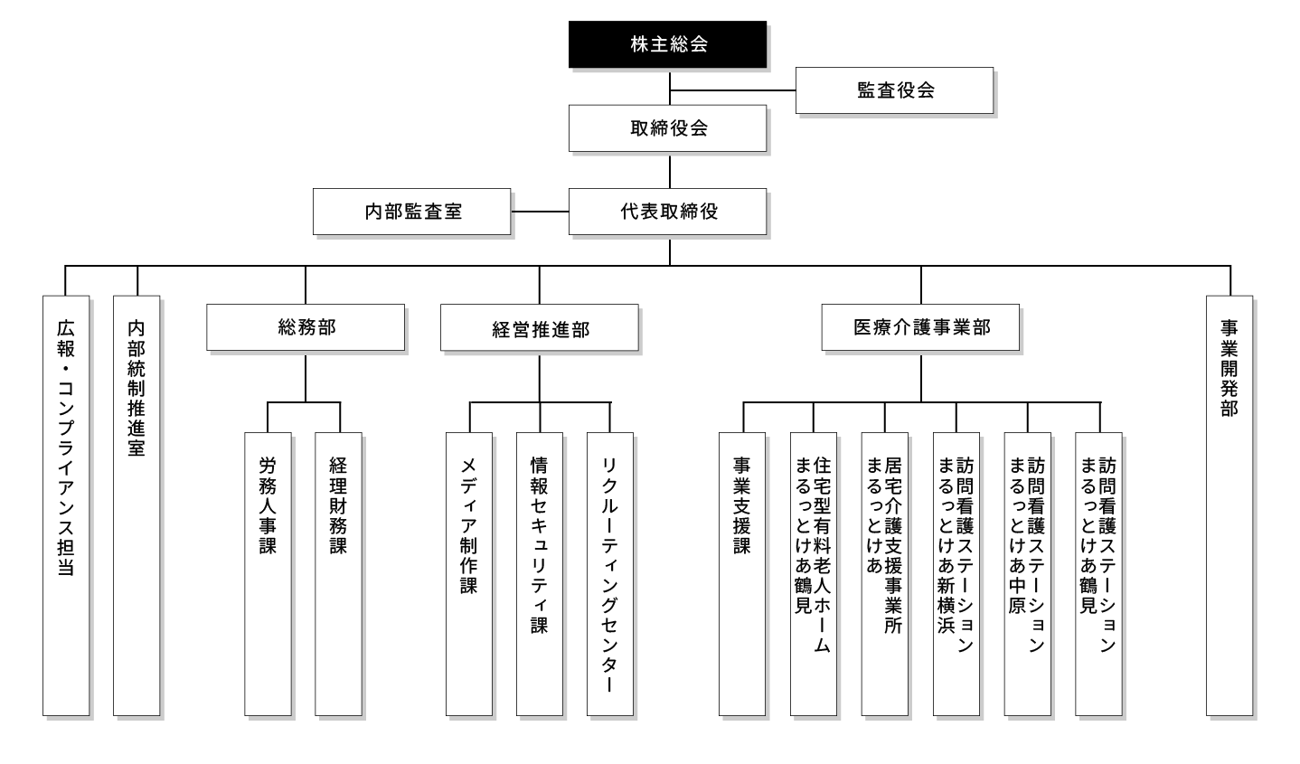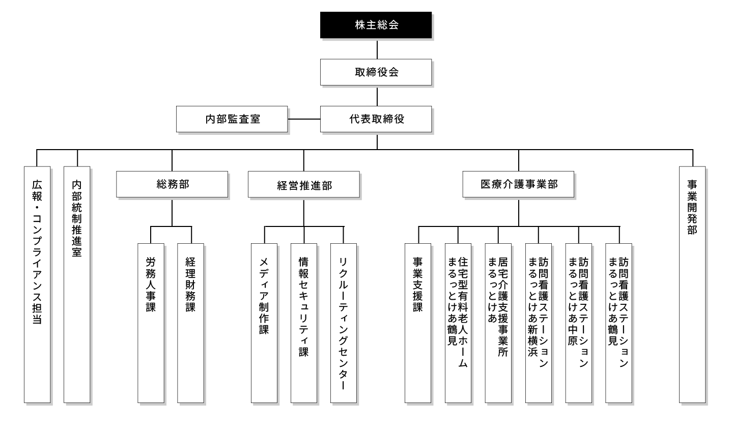 | 事業内容 | ・訪問看護ステーション運営 ・訪問介護ステーション運営 ・居宅介護支援事業所運営 ・住宅型有料老人ホーム運営 ・まるっとけあグループ採用支援業務(求人広告掲載、面接実施等) ・医療介護事業 開業支援サービス ・ケア情報連携システム「オプティまる」提供サービス |